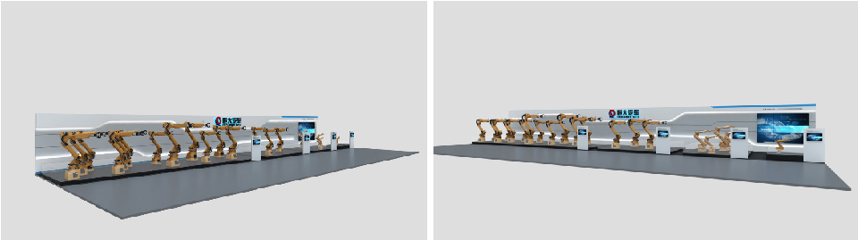 在展厅设计上理念,以生产线展示为概念,采用简洁科技的设计语言,辅助人工智能展示方式,体现品牌产业优势及技术储备,助推中国新能源汽车技术,实现跨越式发展的傲人成果。