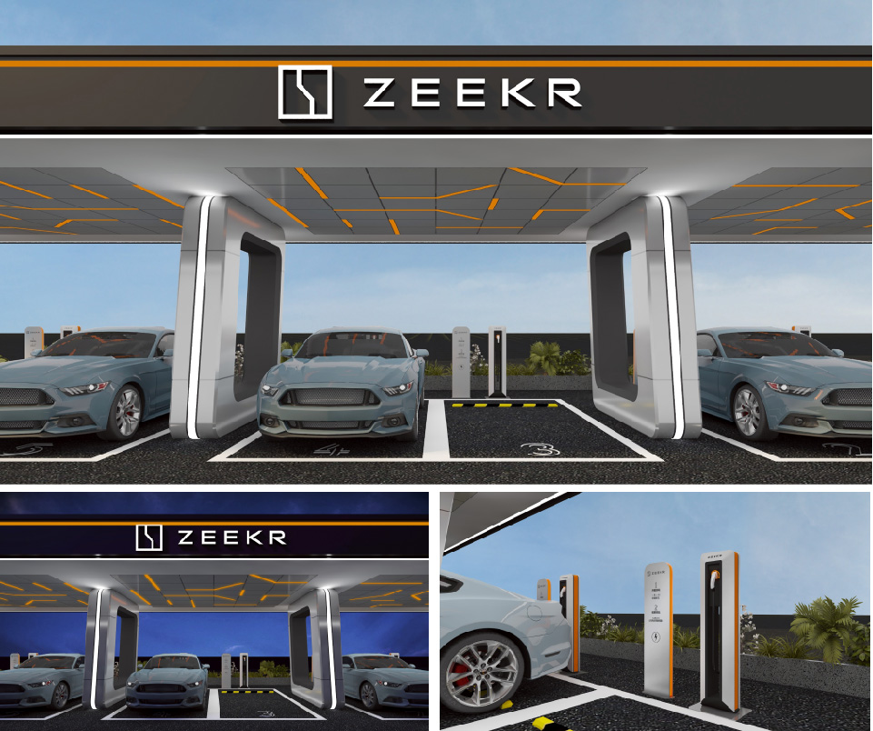空间设计延伸极充桩工业基因,打造具有未来精神的极氪新生活!