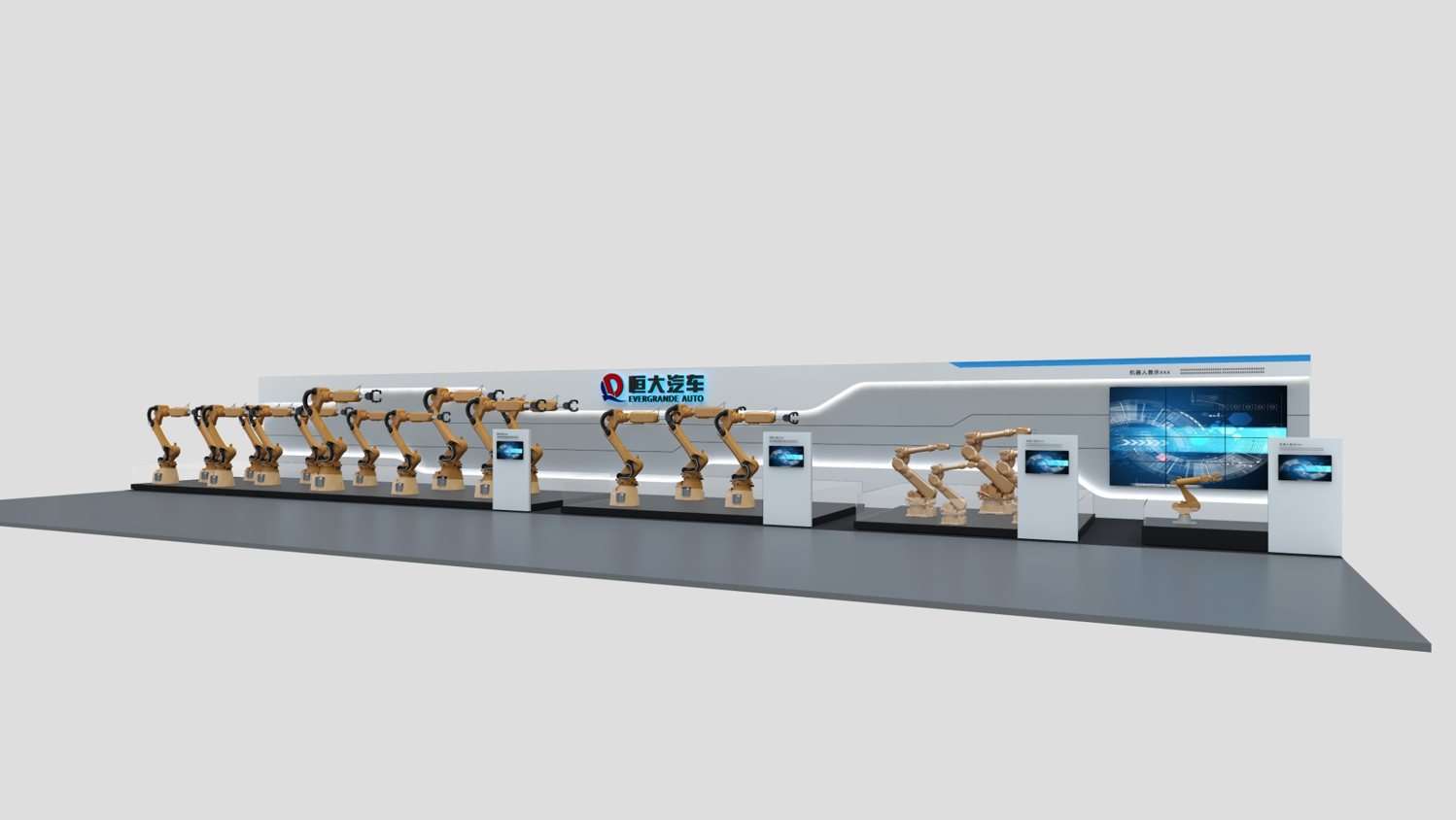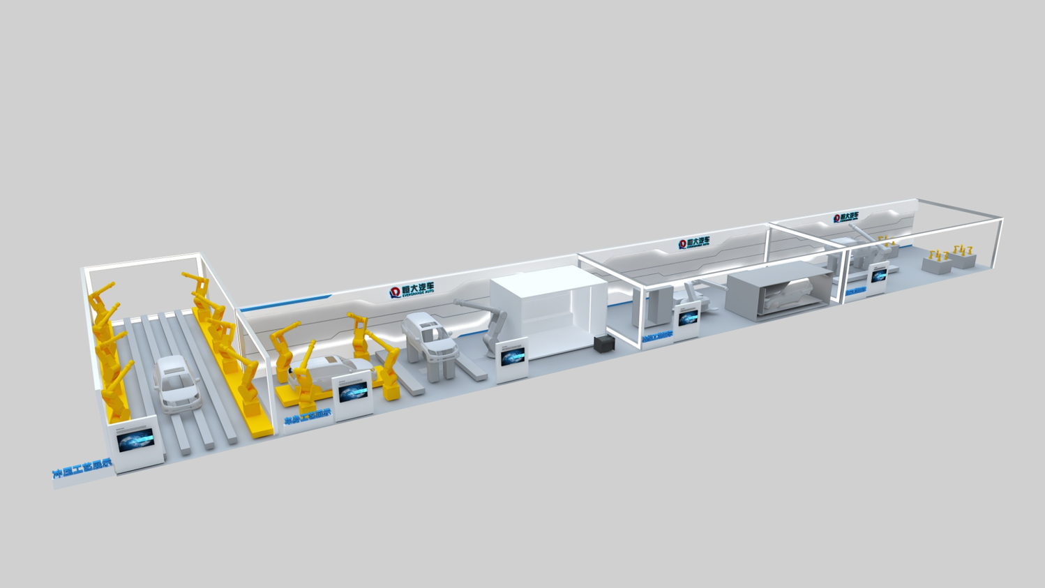 在展厅设计上理念,以生产线展示为概念。